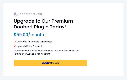 1. In your Doobert Organization Dashboard, go to Chatbot Plugin < Upgrade to Premium in the left menu.