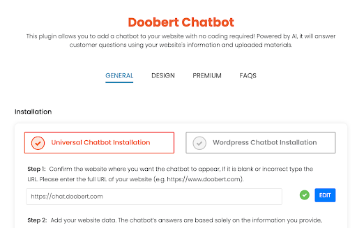 please visit our FAQ page or view Your Ultimate Guide to Installing the Doobert Chatbot video.